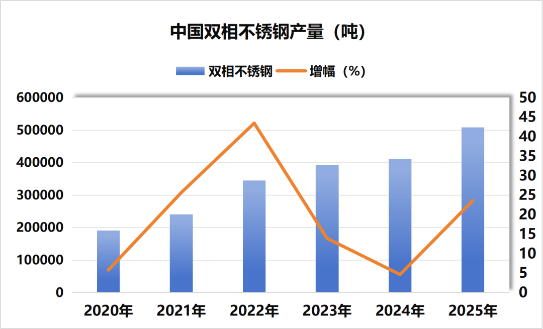 2025年,中國不銹鋼粗鋼產(chǎn)量4086.81萬噸,同比增加142.70萬噸,增長3.62%。